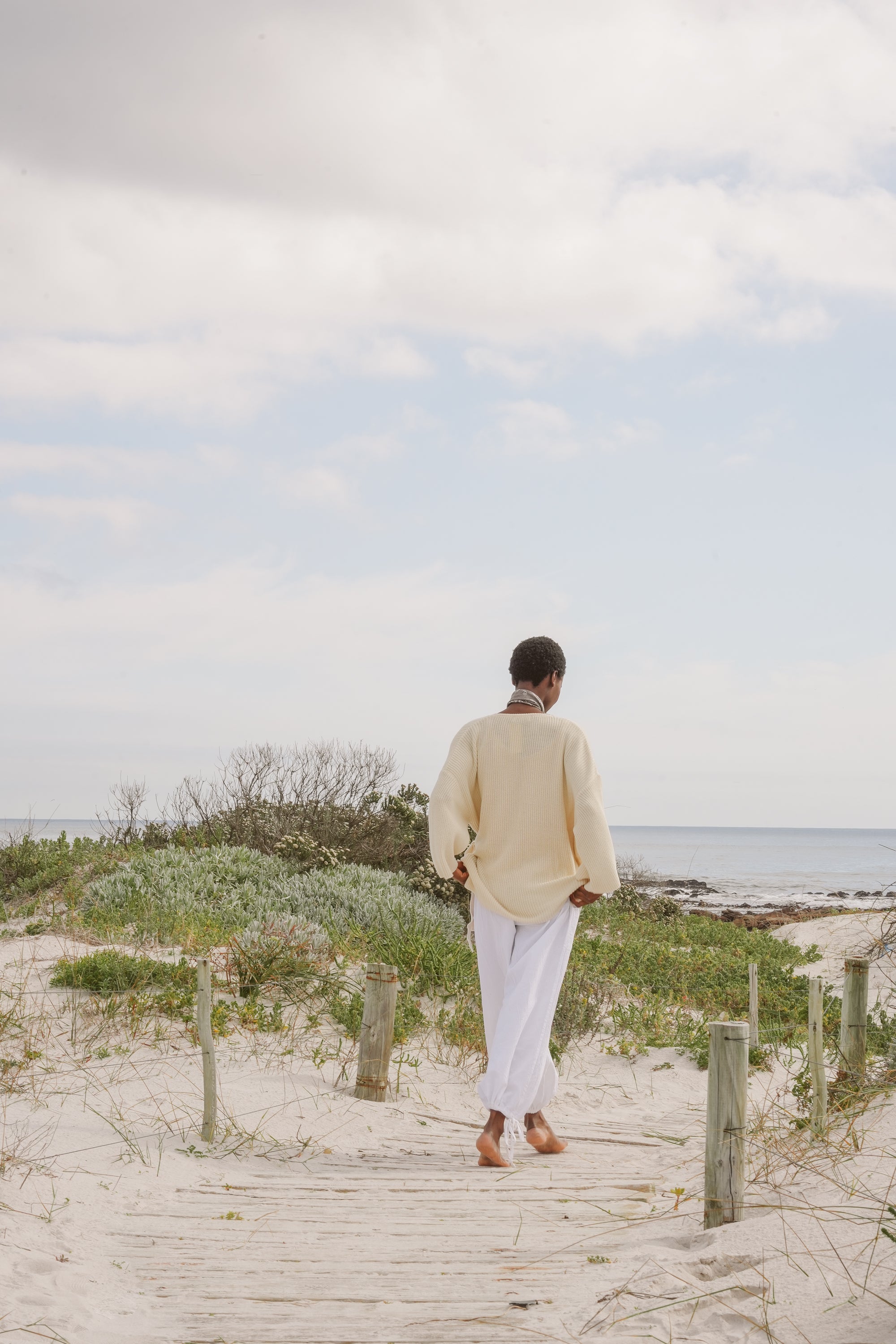 Beautiful lightweight fabric in 100% cotton. Lovely relaxed fit which suits my style perfectly. Got them in blue and white and very sad that I missed out on the lemon yellow colour! Must have for your wardrobe if you are into natural fibres and relaxed, comfortable and well made clothing!