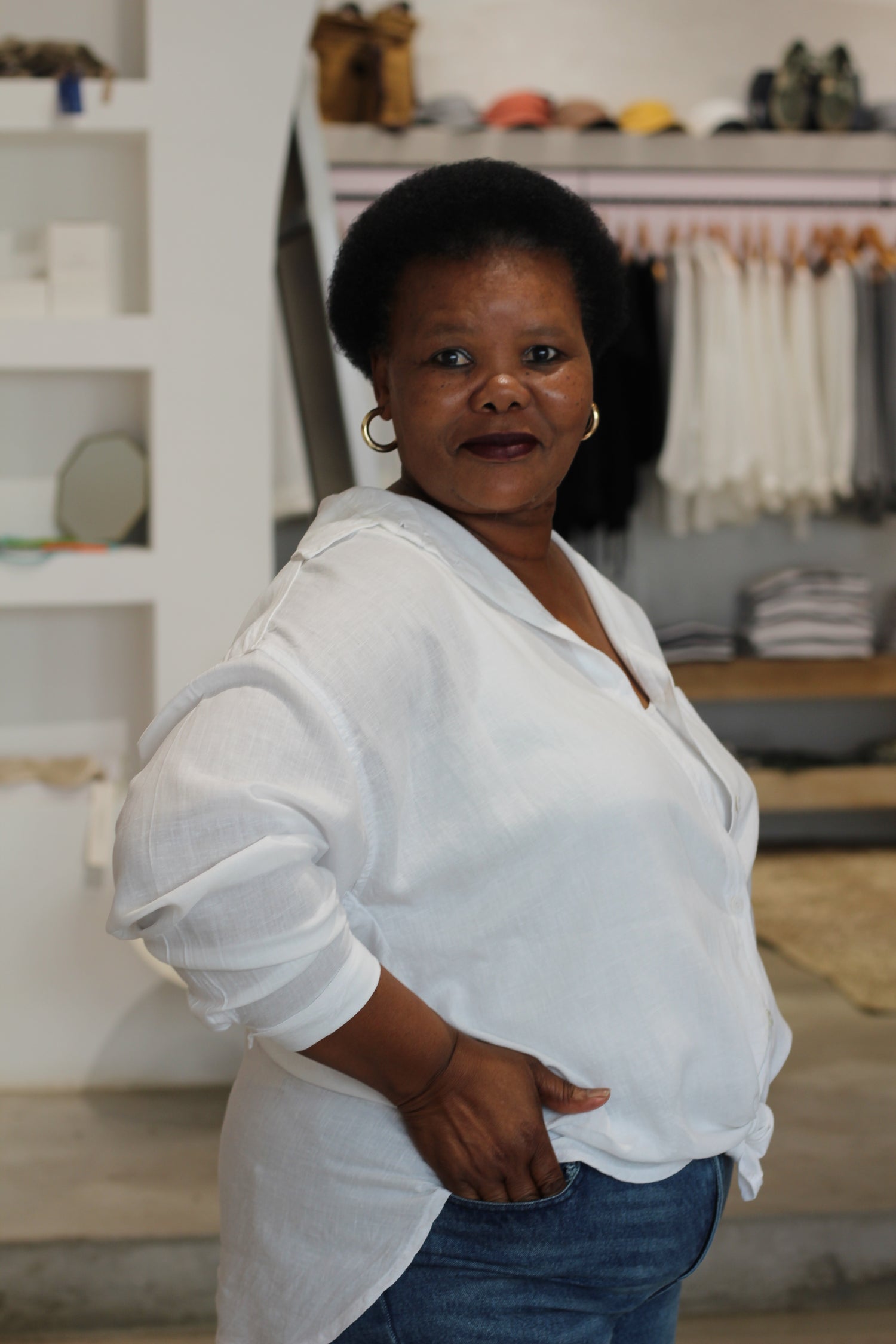 Albertina is the elegant, beautiful lady of our headquarters. She helps with steaming and ironing our garments, and keeping our space clean and tidy. Albertina is such a kind soul - always singing, and bringing so much joy to the office.