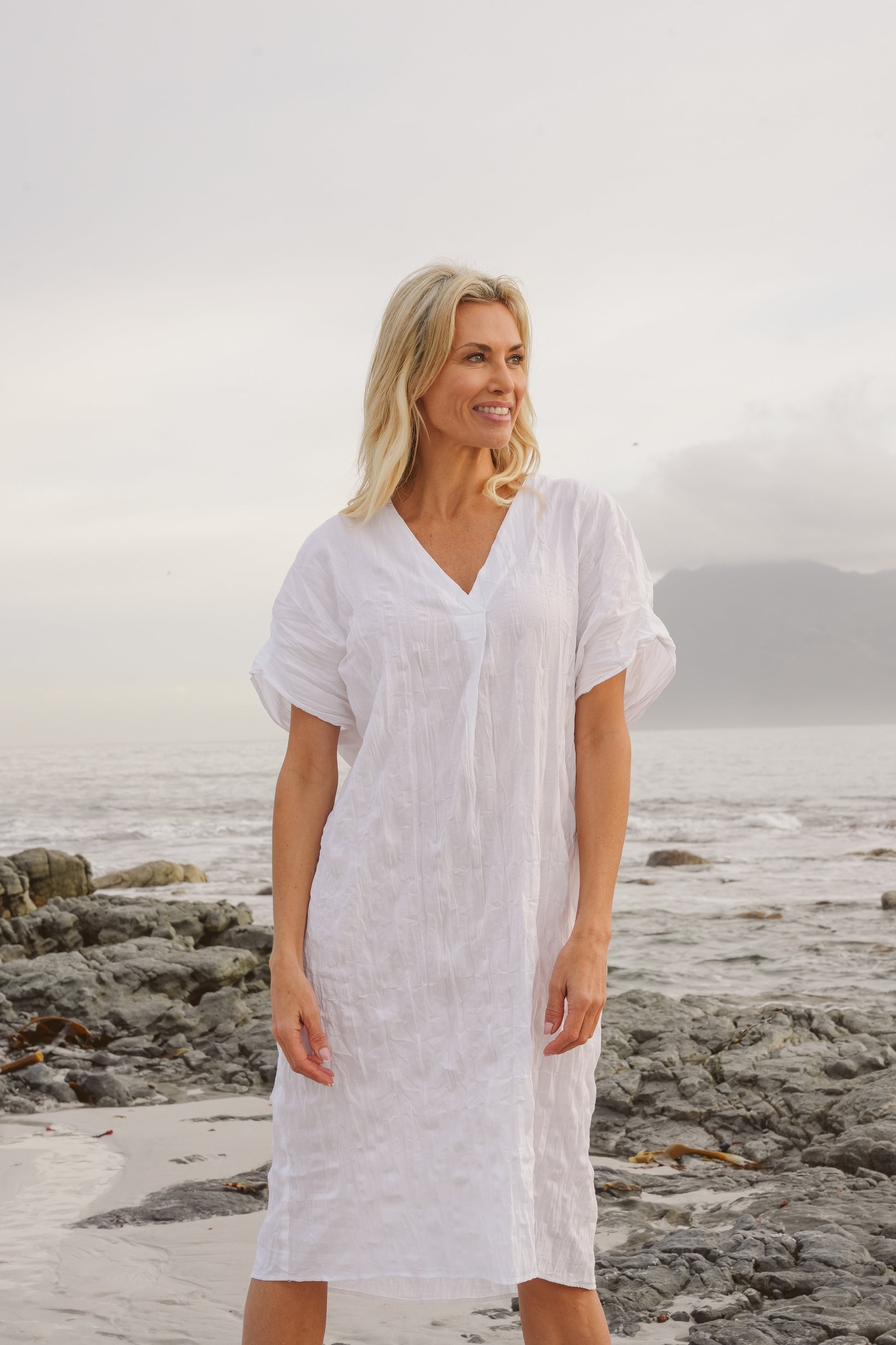 Light, breathable, and beautifully relaxed — the Sage Cotton Flowy Kaftan is designed for easy, everyday wear. Crafted from extra lightweight cotton, it features a flattering V-neckline, soft cap sleeves, and a loose-fitting silhouette that drapes effortlessly.